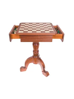 Schachtisch aus Holz mit einem Mahagoni-Furnier überzogen
